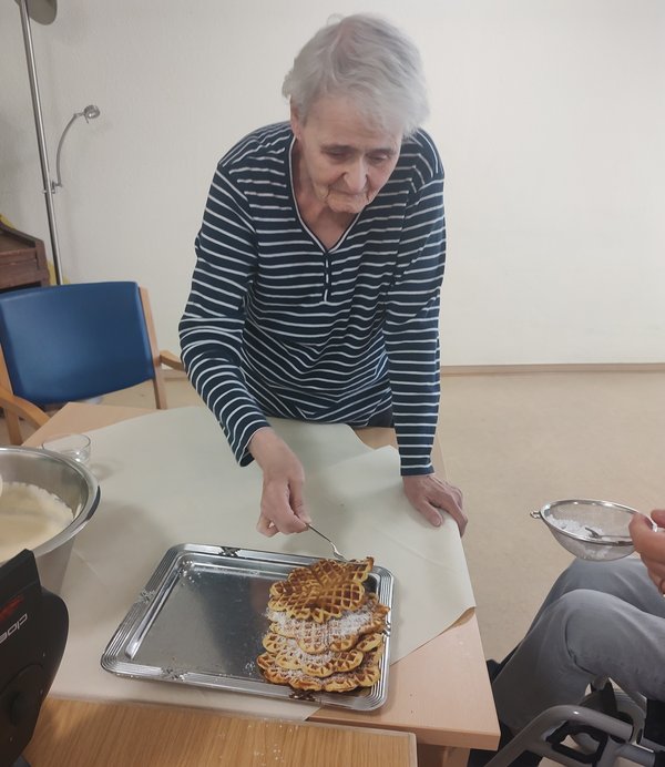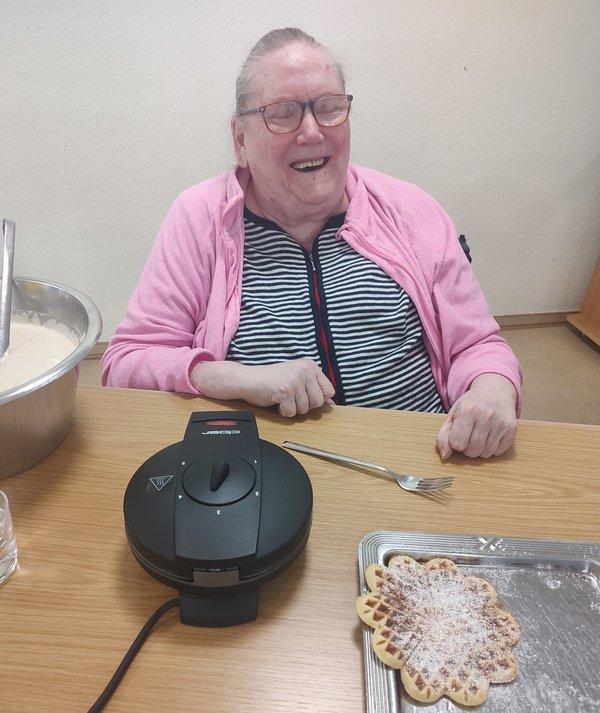 Einige Bewohnerinnen schlossen sich zusammen, um für ihre Mitbewohnerinnen und Mitbewohner, Gäste sowie Angehörige frische Waffeln zu backen.