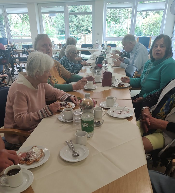Mit großer Begeisterung und viel Einsatz backten die Damen die Waffeln, während sich schon bald der verlockende Duft im ganzen Haus verbreitete. In geselliger Runde wurde gelacht, erzählt und gemeinsam genossen, ein Nachmittag, der nicht nur den Gaumen, sondern auch das Herz erfreute. Natürlich durfte auch der Eierlikör nicht fehlen.