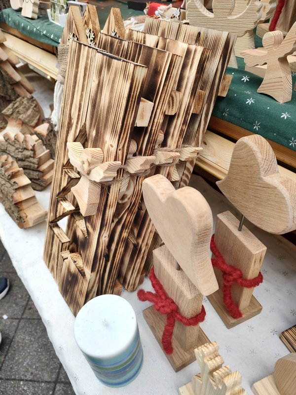 gestaltete Geschenkideen, von handgeschnitzten Figuren bis hin zu selbstgemachten Kerzen.