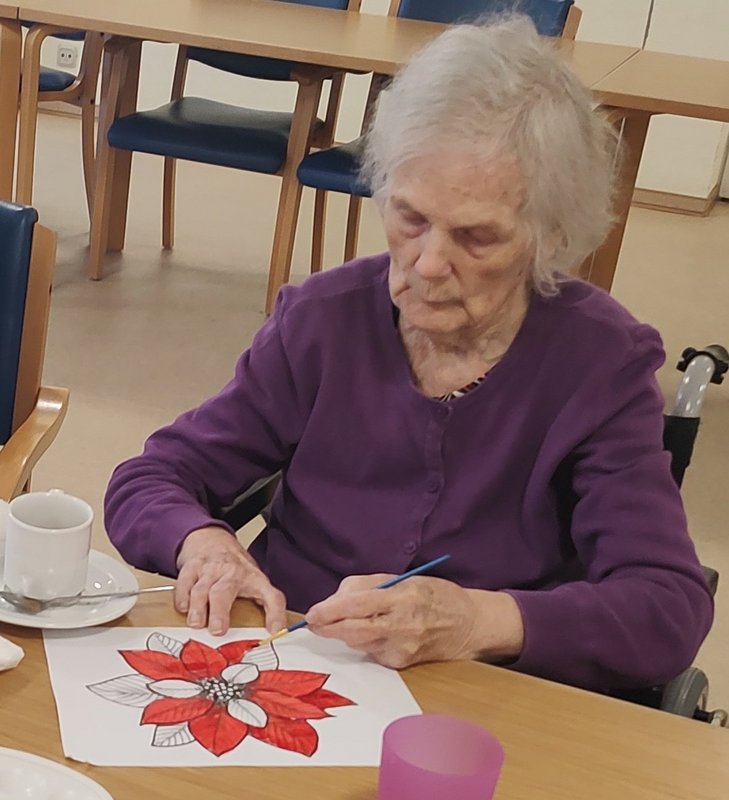 Die farbenfrohen Fensterbilder wurden von Bewohnern und ihren Angehörigen bei einer Tassee Kaffee und Gebäck gestaltet